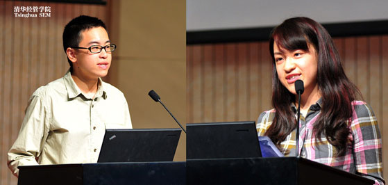 法学院2010级学生顾致远(左)、新闻学院2011级学生张涵影分别发言