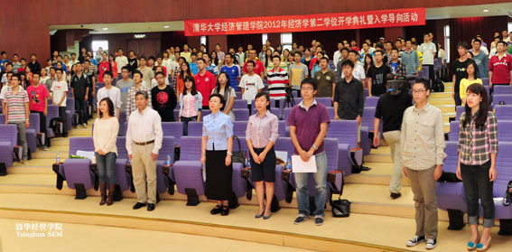 2012年9月16日,清华大学经济管理学院经济学第二学位开学典礼暨入学导向活动在伟伦楼报告厅举行,经济学第二学位学术协调人杨思群教授主持大会,副院长白重恩教授、班主任刘玲玲教授、欧阳敏教授等出席活动。