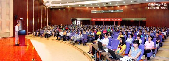 2012年8月16日上午,清华经管学院2012级本科开学典礼在伟伦楼报告厅举行。院长钱颖一、副院长白重恩及党委副书记焦捷等老师与200多名2012级本科新生一起参加了开学典礼。白重恩副院长主持了典礼。