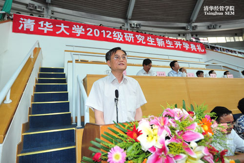 2012年8月24日上午,清华大学2012级研究生开学典礼在清华综合体育馆举行。五千多名研究生新生参加了开学典礼,清华经管学院院长钱颖一教授代表全校教师在开学典礼上讲话。