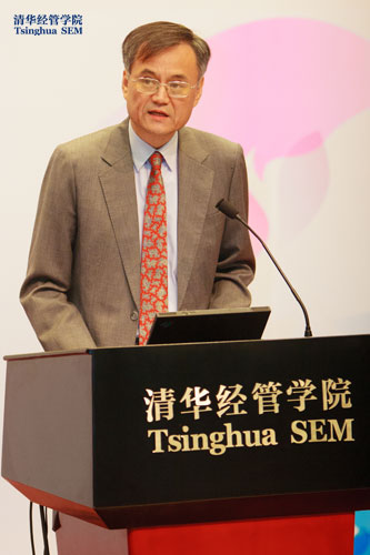 五道口金融学院院长吴晓灵做了“经世济民,为社会经济发展提供良好的金融服务”的主题报告。她首先欢迎同学们报考清华大学的金融专业硕士,进入清华经管学院、五道口金融学院和深圳研究生院联合打造的金融高端人才的培养基地。她解读了全球货币制度下金融业面对的挑战。中国作为全球第二大经济体,目前的金融行业也面临着严峻的挑战,包括各国经济结构失衡,财政纪律涣散,各国政府面临政治的博弈,同时汇率利率波动催生了金融衍生产品,偏离为实体经济服务又会引发金融危机。