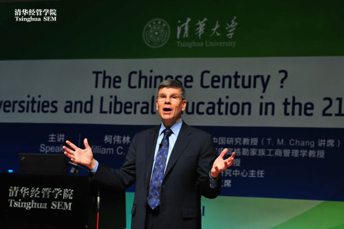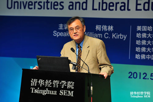 受清华大学邀请,2012年5月31日,哈佛大学中国研究教授、哈佛大学杰出贡献教授、哈佛大学费正清研究中心主任、哈佛中国基金会主席柯伟林(William Kirby )博士访问清华,并在清华经管学院伟伦报告厅就21世纪大学通识教育发表了演讲。清华大学校长陈吉宁教授等出席演讲会,经济管理学院院长钱颖一教授主持了演讲。清华大学各单位党委(总支)理论学习中心组成员以及部分师生参加了演讲会。