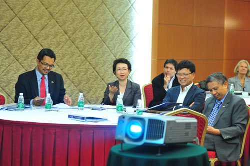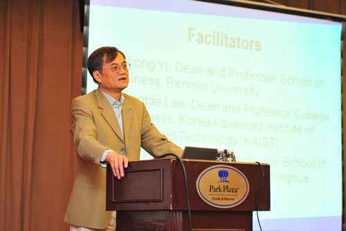 欢迎仪式结束后,中国人民大学商学院院长伊志宏教授就“领导力和管理的战略转变”一题发表了主旨演讲并主持了随后的讨论环节。当天下午,韩国高等科技大学KAIST商学院院长Byungtae Lee教授主持了题为“商学院的教学与研究”的讨论会。与会的商学院负责人结合自身的商学院管理与教学经验与同行们开展了热烈的讨论。