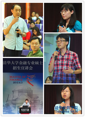 清华经管学院和清华五道口金融学院合作开展金融专业硕士教育,并将在2012年首次联合举办金融专业硕士招生夏令营。2012年6月3日,两个学院在经管学院伟伦报告厅共同举办2013年清华大学金融专业硕士项目招生宣讲会。经管学院副院长白重恩、金融硕士项目学术主任郦金梁,五道口金融学院常务副院长廖理、副院长康以同等出席了本次活动。宣讲会由经管学院金融硕士项目执行主任郝秀清主持。