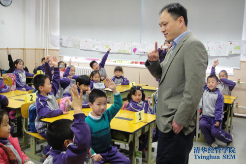 李宏彬为孩子们讲解经济学