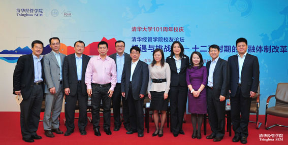 4月28日,作为清华大学101周年校庆系列活动之一,以“机遇与挑战——‘十二五’时期的金融体制改革”为主题的值年校友论坛在清华经管学院舜德楼418室举行。在春意盎然的校庆纪念日,经1987级校友济济一堂,忆同窗旧事,话国家未来。