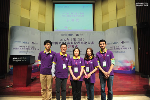2012年4月21日下午,2012年(第二届)中国MBA商业伦理辩论大赛开幕式在清华大学经济管理学院伟伦楼国际报告厅举行。来自北京大学、北京理工大学、北京师范大学、北京邮电大学、华北电力大学、河北工业大学、南开大学、首都经济贸易大学、天津大学、中国传媒大学、中国科学院、中国人民大学、中国政法大学、中央财经大学、郑州大学和清华大学的16支MBA辩论队参加了开幕式。本次活动由清华大学经济管理学院MBA教育中心、清华大学经济管理学院领导力研究中心(伟创力伦理与社会责任项目)和《清华管理评论》杂志社共同主办,南开大学MBA中心协办,并由全国MBA教育指导委员会提供学术指导。