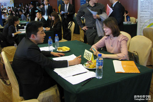众多优秀雇主的聚集,吸引了清华经管学生的高度关注。面对心仪的雇主和职位,同学们根据CDC提供的简历模板,提前认真准备了规范的中英文简历,并着正装出席招聘会。他们专业和主动的态度给雇主代表留下了深刻印象。