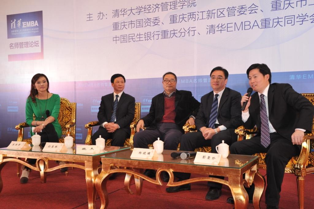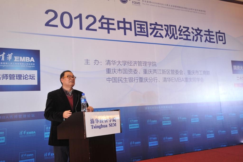 12月27日,由清华大学经济管理学院主办的,面向政府经济管理部门、企业界、金融界公开的“清华EMBA名师管理论坛”在重庆举行。论坛由重庆市国资委、重庆两江新区管委会、重庆市工商联、中国民生银行重庆分行、清华EMBA重庆同学会协办。清华大学经济管理学院教授魏杰,重庆建工集团董事长杨镜璞,重庆航空股份有限公司党委书记彭聚珍,重庆市工商联主席、重庆市政协副主席、中共十六大代表、重庆南方集团有限公司董事长孙甚林等嘉宾,共同以“2012年中国宏观经济走向”为主题进行了探讨,助力重庆经济腾飞。