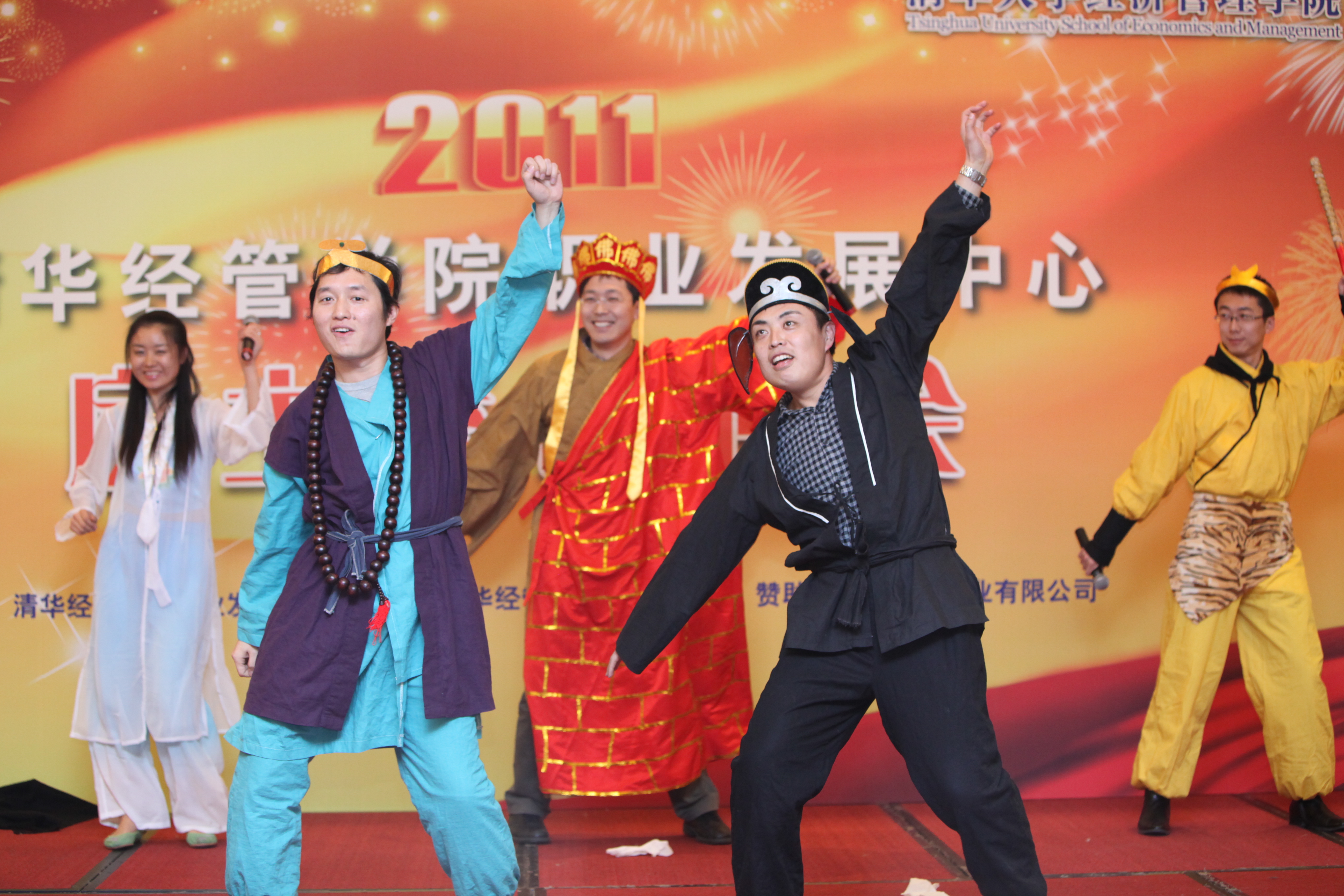 晚会接近尾声,由11级MBAF12班的同学带来的舞台剧《西游记二记之三打白骨精》掀起了新一轮的高潮。这一场融合了各种萌与雷的搞笑舞台剧迎来了全场一次又一次的掌声。来自安永会计师事务所的人力资源负责人林娟女士说,这次晚会充分展现了清华学生的创意与活力,让她对清华经管学院的学生有了进一步的了解的同时也有了更大的兴趣。在结束神秘的抽奖环节后,钱院长与所有到场嘉宾共同举杯,庆贺本次雇主答谢晚会的圆满成功。