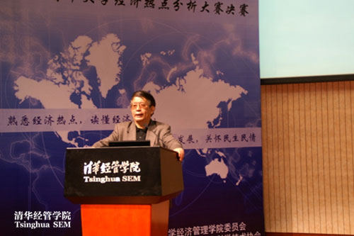 12月11日晚,“今经乐道”首届清华大学经济热点分析大赛决赛于经管学院伟伦国际报告厅进行。晋级决赛的八支队伍展开了激烈角逐,经管学院李子奈、武康平、何平教授,马克思主义学院刘震教授,校团委副书记孙睿君、邴浩老师等担任决赛评委嘉宾。