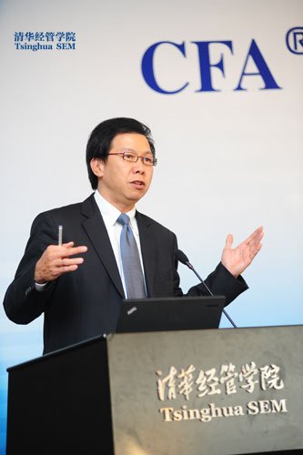 签字仪式之后,艾博科博士为金融硕士生和在座的学生和来宾详细介绍了CFA 课程。艾博科博士认为:“就读清华大学经济管理学院金融硕士专业的学生能接触CFA课程考试知识体系,并涉猎被投资专家所广泛认同并在全球投资领域得到实践的投资理念和原则。如果能够很好地掌握这些CFA课程的基础,这些学生就在获得宝贵的CFA特许资格认证的道路上迈出了一大步。”