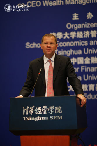 钱颖一院长在致辞中指出, “清华金融高端讲坛”是纪念清华百年华诞的系列活动之一,活动邀请海内外杰出的金融领域的学者、政府官员、业界人士为主讲嘉宾,与清华师生共同分享最新、最权威的金融信息与经济话题,通过理解和借鉴他们科学的思维及方法,推动金融研究,促进学科发展,培养优秀人才。钱院长还向大家介绍了主讲嘉宾瑞银财富管理首席执行官Jürg Zeltner先生。Jürg Zeltner先生在世界五大洲均有丰富的工作经历,曾任北欧、东欧、比利时、荷兰及卢森堡、德国及中欧财富管理业务主管,他拥有哈佛大学商学院高级管理学位,同时也是瑞士商会德国董事会成员、瑞银Optimus基金会董事会成员。
