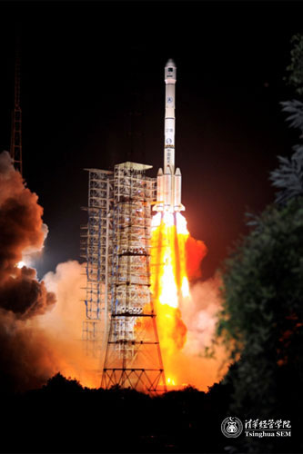 8月11日下午,清华EMBA的同学们乘机抵达西昌青山机场后就马不停蹄地赶往西昌卫星发射中心,参观发射塔架和整装待发的长征运载火箭。虽然饥肠辘辘,但同学们的学习热情丝毫不减。在参观现场,华崇志同学与大家分享了中国航天50年来取得的成绩,介绍了巴基斯坦1R通讯卫星的基本情况。当晚,同学们再次出发,前往西昌卫星发射中心青冈坝参观平台,现场观看巴基斯坦1R通讯卫星发射。8月12日凌晨0:15,洪亮的倒计时声在西昌卫星发射中心上空响起,伴随着红红的火焰,空气隆隆的爆裂声响彻了整个山谷,载着巴基斯坦1R通讯卫星的长征三号乙运载火箭腾空而起,直冲云霄。同学们被这壮丽的发射场面深深地震撼了,情不自禁地为发射成功鼓掌叫好。
