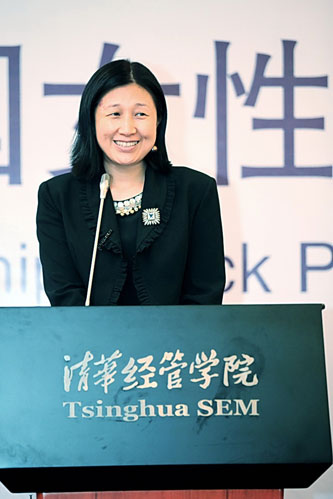 高盛高华证券有限责任公司执行董事刘瑾女士也在结业典礼的致辞中以女性的视角分享了她参与大赛评比的感受。作为女性她深知女性创业的不易,非常希望看到大家的进步。巴黎HEC商学院战略与政策系教授、本课程法方联席主任Oliver Gottschalg教授提到,课程的结束是她们事业上的新起点,希望同学们再接再厉,事业上取得更大的进步。薛镭教授则代表清华大学恭祝她们成为一万名女性中的一员,祝福同学们在未来的日子里事业蒸蒸日上。