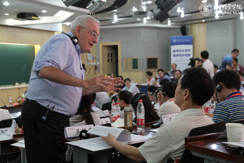 继2010年首届案例研讨课后,麦克法兰案例研讨课今年再次成功举办,共有来自中国本土50余所商学院的80位教师及清华经管学院近10位教师报名参加。哈佛商学院前高级副院长、清华经管学院座教授、中国工商管理案例中心联执主任沃伦·麦克法兰教授对案例研讨课进行总体性介绍,完整演示了奥的斯(OTIS)案例的课堂教学过程,并对《用友(A)》与《金蝶公司》案例进行了对照性讲解。麦克法兰教授说:“本次案例研讨课完全模拟哈佛商学院的案例教学过程,通过小组讨论对案例充分预习,在课堂上,教师提出启发性问题并组织课堂讨论,引导课堂参与者进入案例情境,在思考和研讨中有所收获,这是案例教学的价值所在。”