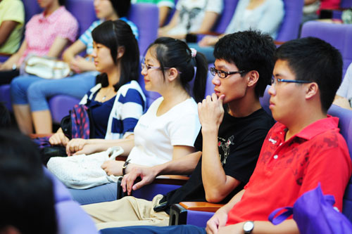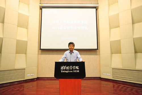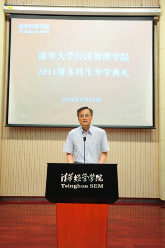 8月18日上午, 清华大学经济管理学院2011级本科生开学典礼在伟伦楼报告厅举行。院长钱颖一教授、副院长白重恩教授、党委副书记焦捷教授等多位教师与200余位新生共同见证了这一值得纪念的时刻。