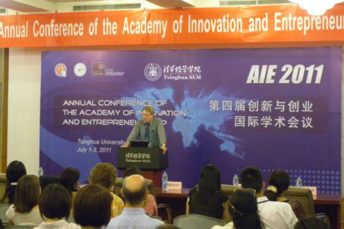 2011(第四届)创新与创业国际学术会议(Annual Conference of the Academy of Innovation and Entrepreneurship,AIE2011)于7月1-3日在清华大学经济管理学院举办。由清华大学经济管理学院中国创业研究中心、清华大学技术创新研究中心和英国牛津大学技术与管理发展中心共同主办的本次年会吸引了200多位海内外学者及高校学生注册投稿,来自亚洲、欧洲、北美洲、南美洲、非洲以及大洋洲,共26个国家和地区的80余名创新与创业研究领域学者参会发言,大家共聚一堂,交流讨论最新的研究成果。