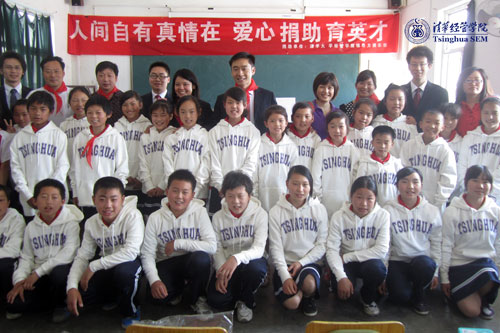 清华百年校庆期间,清华经管领导力俱乐部在百年校庆纪念衫慈善义卖活动中募得善款10.69万元。近日,领导力俱乐部向昌平区东小口镇明欣学校捐赠了善款。首批款项用于资助明欣学校聘请音乐、美术教师各一名,并捐助中国滋根乡村教育与发展促进会,用于打工子弟学校助学金项目。
