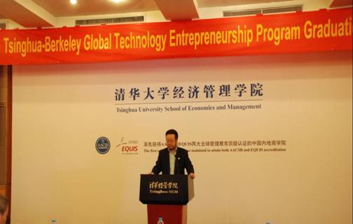 5月27日,“清华-伯克利全球技术创业项目”第二期结业典礼在清华大学经济管理学院舜德楼举行。清华大学研究生院常务副院长贺克斌教授,清华大学经济管理学院院长助理、清华-伯克利全球技术创业项目中方主任高建教授出席并致辞。凯旋创投副总裁衣进先生、海淀资本中心总经理杜朋先生、华登国际董事总经理李文彪先生和京华山一上海投行部总经理唐浩夫先生等项目创业导师,以及清华校友、青云创投执行董事左林先生和伯克利校友、Hambrecht Suma Capital董事总经理吴泽强先生出席结业典礼并讲话。