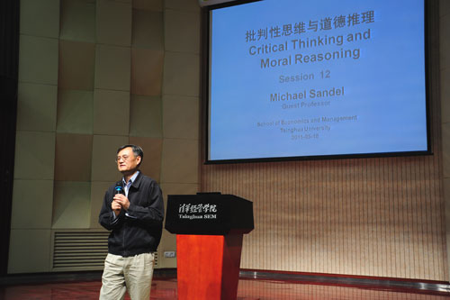 2011年5月18日,哈佛大学迈克尔?桑德尔教授来到了清华大学经管学院本科生课程“批判性思维与道德推理”本学期第十二次课的课堂,为在场师生带来了生动而深刻的一课。