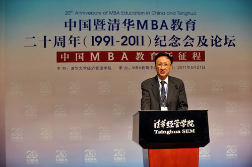2011年5月21日,“中国暨清华MBA教育二十周年纪念会及论坛”在清华大学经济管理学院举行。本次活动由清华经管学院主办,MBA教育中心承办。与会院校106家,参会的各学院院长、书记等100位,参会的各院校代表248名,可谓群贤毕至,济济一堂。