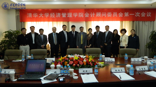 2011年4月20日上午,清华大学经济管理学院会计顾问委员会第一次会议在舜德楼306召开。院长钱颖一教授、副院长陈国青教授、副院长白重恩教授、院长助理高建教授、会计系主任陈晓教授、管理科学与工程系钱小军教授等12位学院领导和教授参加了会议。