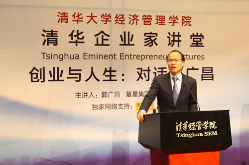 复星集团董事长郭广昌先生应邀做开堂首讲,发表题为“创业与人生:对话郭广昌”的演讲,分享了他的创业历程、管理思想,及对人生的感悟和体会,并与同学们进行了广泛深入的交流。清华经管学院院长钱颖一教授在演讲前为活动的首场致辞并主持了此次活动。