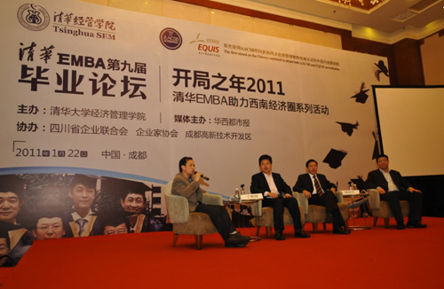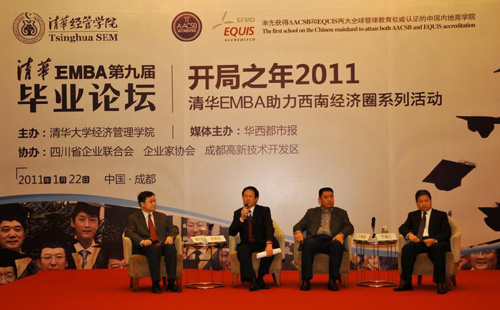 清华EMBA毕业论坛自2004年开始,已成功举办八届,但这是第一次在北京以外举行。廖理教授在谈到选择成都的原因时表示,四川是西南的经济大省,清华EMBA又有50余位校友来自四川,清华经管学院希望联合当地政府和企业家推动西南经济圈发展,希望在清华百年即将来临之际,能够用清华EMBA雄厚的师资力量、先进的学科知识、广阔的校友网络,真正对四川及广大西南地区的经济发展起到助力作用。