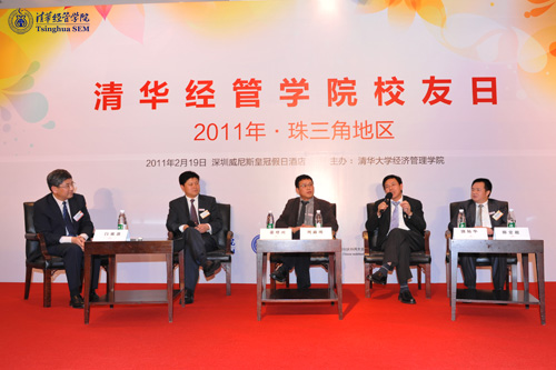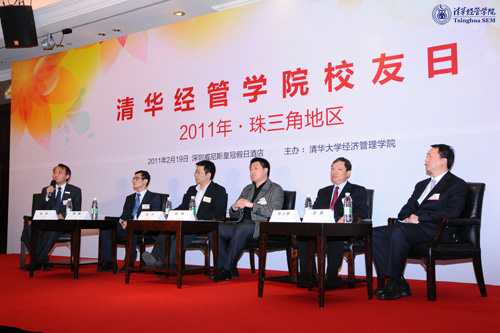 2011年2月19日下午,“清华经管学院校友日:2011年•珠三角”活动在深圳举行,这也是继长三角和北京地区校友日活动之后,学院举行的第三次区域性大型校友互动活动。原福州大学校长吴敏生教授,清华大学校友总会秘书长郭樑教授,清华大学深圳研究生院常务副院长康飞宇教授,深圳研究生院党委书记、副院长赵庆刚教授,深圳研究生院党委副书记、深圳校友会副会长杨瑞东教授,深圳清华大学研究院副院长、深圳校友会秘书长严叔刚教授,清华大学经济管理学院院长钱颖一教授,党委书记杨斌教授以及其他所有院务会成员参加了这一活动,清华经管学院珠三角地区校友以及各界人士600多人到场参会。活动由副院长廖理教授主持。