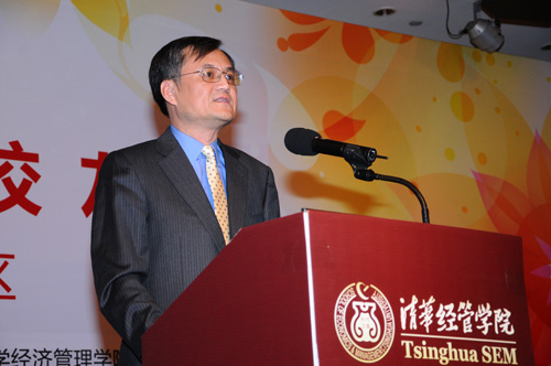 清华经管学院院长钱颖一教授首先作院情报告。他先是介绍了2010年学院顾问委员会会议和同期举行的清华管理全球论坛,然后又从学院的教师职员构成,各教学项目招生情况,高端一流的国际合作,引领全国的教学改革,系统丰富的定期学生活动,具有开创性的信息战略等方面介绍了学院的最新发展动态。钱院长介绍说,2010年10月30日学院在上海举办了长三角地区的校友活动,共有350多名校友参加,这成为学院区域性校友活动的新开端,2011年1月15日在北京举行的北京地区校友日更是吸引了700多位校友到场,今后学院将在国内外校友相对集中的地区,定期举办校友日活动,向校友们报告学院最新动态,交流互动。他说,学院发展与校友息息相关,期待进一步加强校友和学院之间的联系,同时也希望得到校友们的大力支持,在智慧、人力和资源三个方面为学院的发展做出贡献。