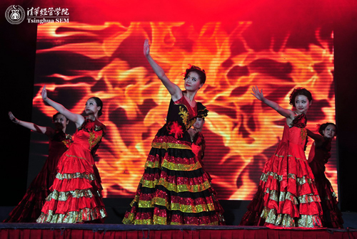 在“清华MBA2010年度十大新闻”的视频和由10P3班带来的激情四射的西班牙弗拉明戈舞蹈“燃烧的舞裙”中,晚会拉开帷幕。