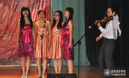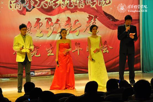 12月27日晚7点,清华大学经济管理学院“经致新声”研究生新年晚会在蒙民伟楼多功能厅举行。校党委研究生工作部部长武晓峰,清华经管学院院长钱颖一,党委书记杨斌,副院长陈国青、廖理、白重恩、夏冬林,党委副书记赵冬青,院长助理高建等领导来到晚会现场,与经管研究生同学共同庆祝新年的到来。钱颖一教授代表学院致辞,祝贺晚会的成功举办,并向全体研究生同学致以新年的祝福。多位学院教师也通过录制的视频,向研究生同学寄予新年的期许和祝愿。
