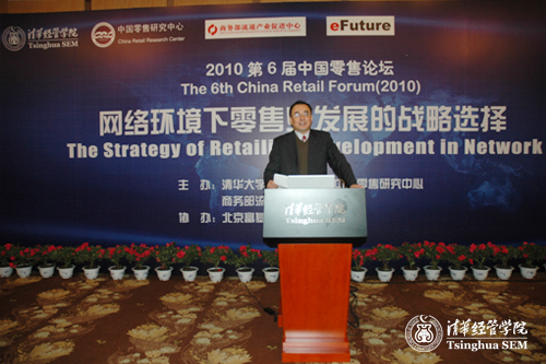 12月8日,由清华大学经济管理学院中国零售研究中心、商务部流通产业促进中心联合主办,北京富基融通科技有限公司协办的第六届中国零售论坛成功举办。此次论坛的主题为“网络环境下零售业发展的战略选择”。论坛开幕式由清华大学经济管理学院副院长、中国零售研究中心主任陈国青教授主持,主题演讲由中心常务副主任李飞教授和中心副主任、中欧国际工商学院王高教授主持。