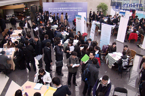 12月9日下午,清华大学经济管理学院2010年秋季学期校园集体招聘会在清华科技园阳光厅举办。本次招聘会由清华经管学院职业发展中心(Career Development Center, CDC)主办,来自金融、能源、制造业、咨询、IT、建筑等多个行业的34家中外知名企业参加了此次招聘会,共发布职位150余个,涉及投资管理、项目管理、生产和运营管理、财务管理、战略管理、人力资源管理等多类职能。这些职位主要面向经管学院2011届本、硕、博及MBA毕业生,部分参会单位还面向2012届毕业生提供了一些实习岗位。