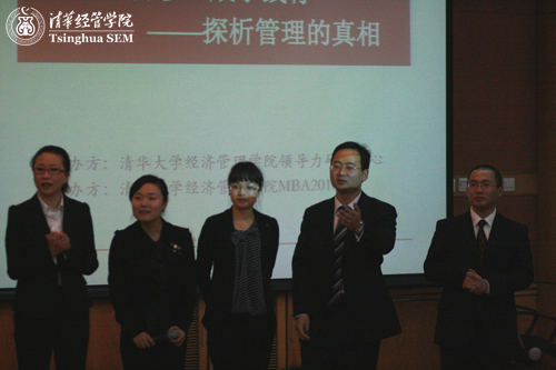 本次活动由清华经管领导力研究中心主办,清华经管学院2010级全日制MBA班承办。“管理思维与沟通”课程授课教师杨斌教授、管理科学与工程系钱小军教授、经济法教研组姜朋教授出席本次活动。本次论坛同时作为“管理思维与沟通”课程公开课向公众开放。