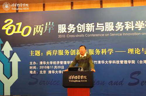 继2007、2008“中国服务创新研讨会”在清华大学成功举办后,2010年11月20日,由清华大学经济管理学院、教育部人文社会科学重点研究基地——清华大学技术创新研究中心(RCTI)和新竹清华大学科技管理学院联合举办的“两岸服务创新与服务科学研讨会”在清华大学举行。这是迄今为止两岸学术界和产业界在该领域内首次合作举办的高水平学术会议。