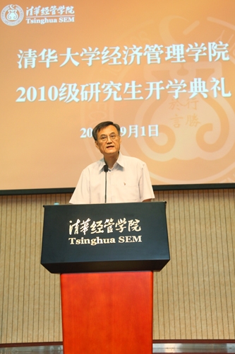 2010年9月1日上午十时许,清华大学经济管理学院2010级研究生开学典礼在伟伦楼报告厅举行。清华经管学院院长钱颖一教授、副院长陈国青教授、副院长夏冬林教授、党委副书记赵冬青教授、院长助理高建教授、以及教学办主任朱玉杰教授等出席了开学典礼。开学典礼由清华经管学院金融系何平教授主持。