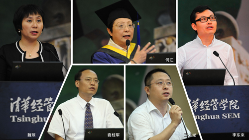 本次毕业的177位EMBA同学来自五湖四海、各行各业,他们在上午参加过学院毕业典礼之后,全部出席了下午的毕业论坛,分享清华园中珍贵的最后一课。此次毕业论坛结合金融危机后国际经济发展背景,以“纵论经济大势,谋划企业未来”为主题,由李稻葵教授、朱武祥教授与五名EMBA优秀毕业生共同探讨下半年宏观经济形势以及企业有效的商业模式。