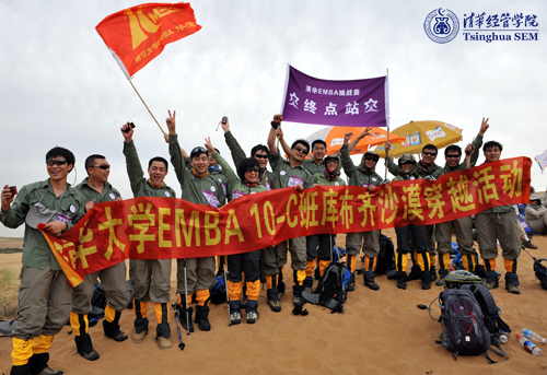 2010年7月2日,清华大学经济管理学院EMBA教育中心主办的“库布其沙漠挑战赛”活动正式拉开帷幕。清华EMBA学生以及来自清华-花旗EMBA奖学金媒体培训课程班的同学,共计200余人,顺利完成历时两天的沙漠穿越。