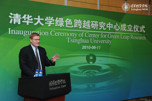 Stuart Hart教授特别提到,清华大学绿色跨越研究中心是全球第一所由大学创立的绿色跨越研究中心,不仅有商学院参加,还有环境系和核研院,这是激动人心的创举,康奈尔大学非常荣幸能够参与。