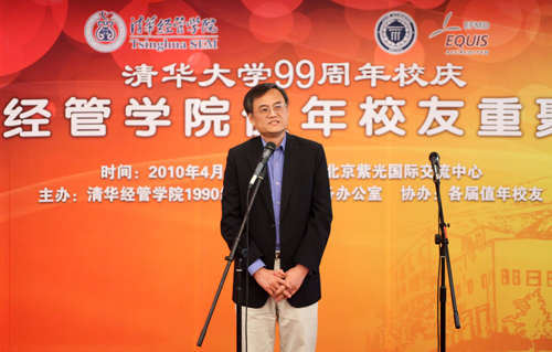 接下来,各级各班的校友踊跃登台,向学院、老师和同学汇报他们的近况。经1980级校友代表、网泰金安信息技术有限公司执行董事董海涛首先发言。他对学习期间老师们的培育之恩表示深深感谢,教授们传授的知识、谆谆的教诲为学生们日后的人生发展奠定了坚实基础。他同时提到,当年的同窗如今已成为社会栋梁,大家虽工作在世界各地,但都牵挂着学院的发展,愿意为母校建设做出更多贡献。随后,罗兰贝格咨询公司全球合伙人兼大中华区副总裁丁杰代表经1985级校友谈到,清华在通识教育、品德培养和校友资源三方面令他们受益匪浅。为促进同班同学的持续交流,毕业后他们特意建立了班级网站,相互鼓励,共同发展。