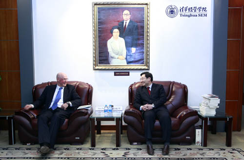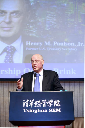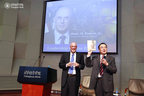 2010年4月7日,美国前财政部长、清华经管学院顾问委员会首任主席、名誉委员亨利·鲍尔森先生(Henry M. Paulson, Jr.)访问清华大学,做客清华大学海外名师讲堂,在清华经管学院发表了题为“危机漩涡中的领导之道”的精彩演讲。