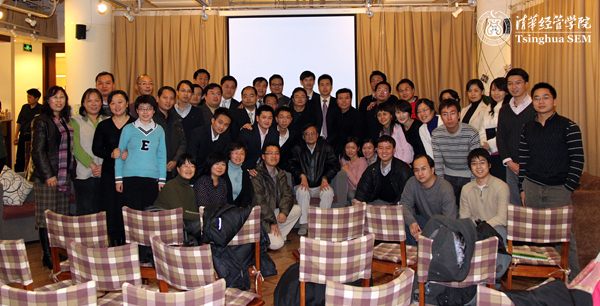 11月19日晚,由清华经管学院MBA同学会精心策划组织的“MBA匹萨之夜”活动在“拾年咖啡”举行。院长钱颖一教授与近50位2008、2009级MBA学生共品匹萨,畅聊发展。
