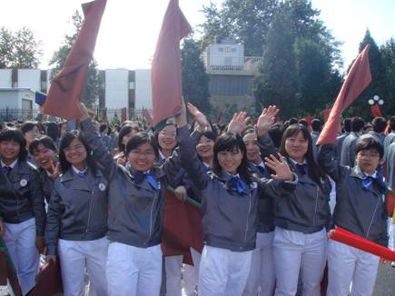 将2个月的训练压缩到一周,训练的强度和难度之高可以想象。6天超常规科学训练中,他们每天早上7点到晚上9点,他们遭遇了26日下午的大雨,27日凌晨4点出发前往密云合练,然后在开训短短四天后的28日凌晨1点到3点赴长安街进行首场演练,完美地展现了集训的成果。“其他方阵都训练2、3个月了,我们只训练这一星期,这些辛苦都不算什么了。大家想的只是努力训练,把方阵走好”,刘若旖同学说。而由于甲流的影响,不少在训练中生病发烧的同学被迫停止训练,送回了学校。经管学院新生章婕同学就是其中的一例,在被送回时,戴着严实的口罩的她很遗憾地告诉我们“本来以为能撑过去的”,但仍然祝福留下来继续奋斗的同学们能创造奇迹,“在短时间内训练出一支整齐规范的方阵”。正是这群年轻、可爱、富有激情的同学们的团结与努力,10月1日的国庆游行庆典上才有清华两个方阵共同完美的演出。