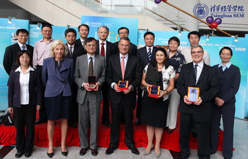 清华经管学院与法国巴黎高等商学院的合作始于1998年,十年来,双方在教师交流、学生交换、学术合作、科学研究、MBA与EMBA培养以及高层管理培训等领域均展开了广泛而深入的合作,并取得了深远的影响。两院联手打造的面向时尚产业高层管理人员的“高级时尚管理项目”,在清华经管学院开办已有三年;双方最近的一次合作是联手推出由高盛公司资助的“巾帼圆梦——中国女性创业管理”培训项目,并将持续开办5年。“巾帼圆梦——中国女性创业管理”项目由清华经管学院和法国巴黎高等商学院共同开发和讲授相关课程,旨在为中国弱势女性提供商业和管理教育机会,让她们能更好地分享经济发展成果。