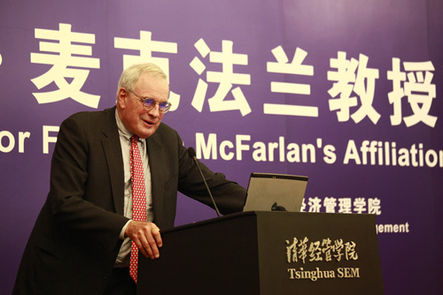 清华经管学院院长钱颖一教授在受聘仪式上表示:“案例教学是管理学教育的重要方法,清华经管学院从战略发展的高度重视案例开发和教学。麦克法兰教授的加入将大大推动经管学院的案例开发和教学,使我们的案例开发和教学达到国际水平,相信也将会对中国的管理教育产生积极的影响。经管学院今后将投入更多的资源,加强案例库的建设。”