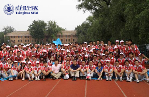 8月10日,清华经管学院党委书记杨斌老师前往清华大学西操训练场,看望利用暑假时间、顶着酷暑参加国庆60周年游行训练的百余名同学。院党委副书记赵冬青老师继8月6号慰问同学后,再次陪同看望。