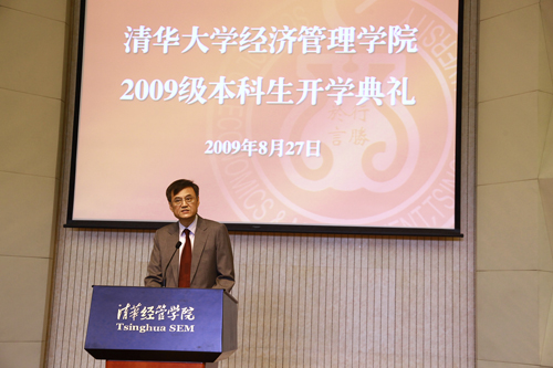 8月27日上午10时,清华大学经济管理学院2009级本科生开学典礼在伟伦国际报告厅隆重举行。院长钱颖一、副院长廖理、副院长夏冬林、党委副书记朱岩、党委副书记赵冬青等领导和老师出席了典礼,与2009级新生及部分新生的家长及亲友共同见证了这一难忘时刻。典礼由副院长白重恩主持。