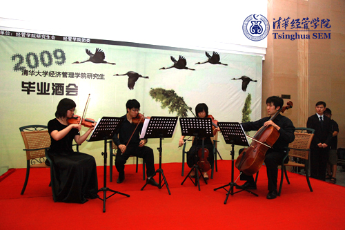 7月13日晚8点,清华经管学院2009年研究生毕业酒会在舜德楼大厅举行。学院党委书记杨斌,学位分委会主席李子奈,副院长白重恩,党委副书记朱岩、赵冬青,金融系主任李稻葵,学院教师吴栋、朱恒源、郑毓煌,研究生工作组组长刘震以及2009年毕业的硕士研究生、博士研究生、MBA学员近百人出席了酒会。